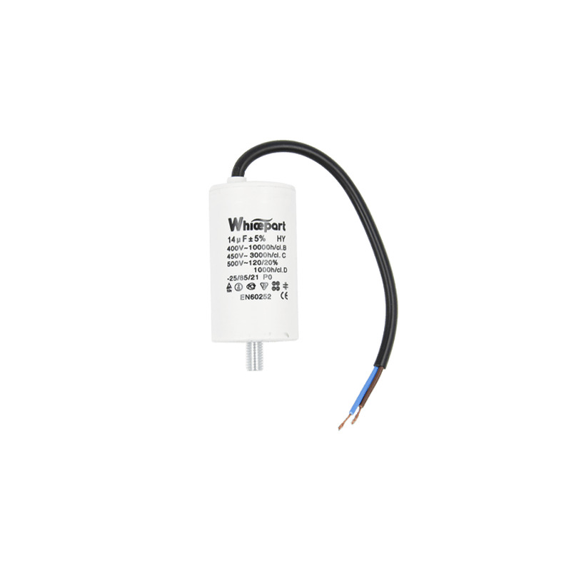 Конденсатор CBB60-G 14 мкФ, 450 В, Whicepart (провід + болт)