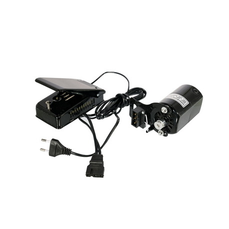 Двигатель - 1 шт., педаль - 1 шт., ремень - 1 шт., болт с гайкой - 1 шт., угольные щетки - 1 пара, инструкция - 1 шт.