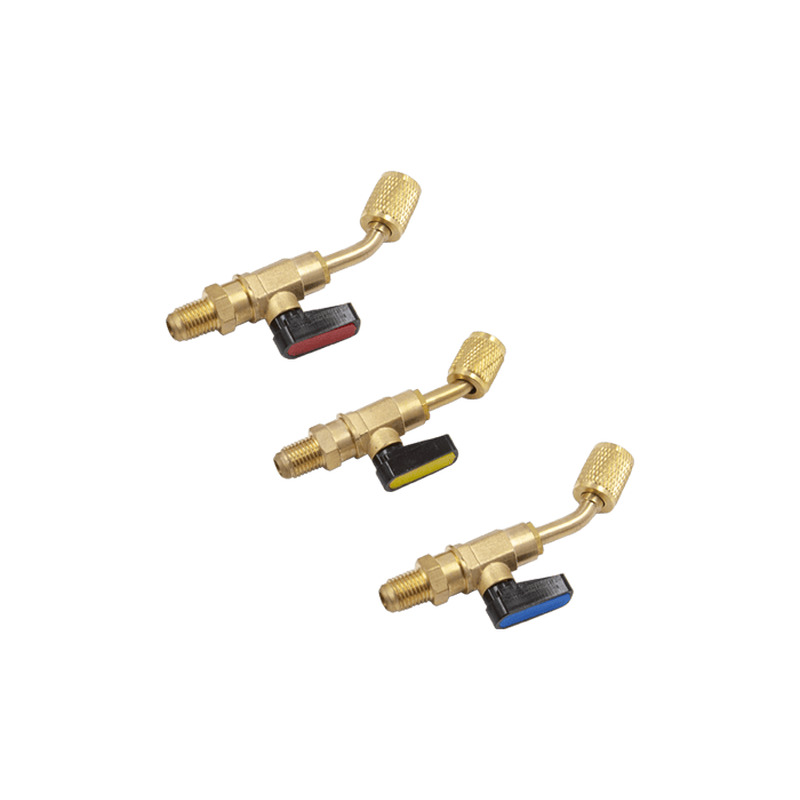 Комплект кранов для заправочного шланга под фреон R-12, R-22, R-134a (1/4"SAE, угловые)