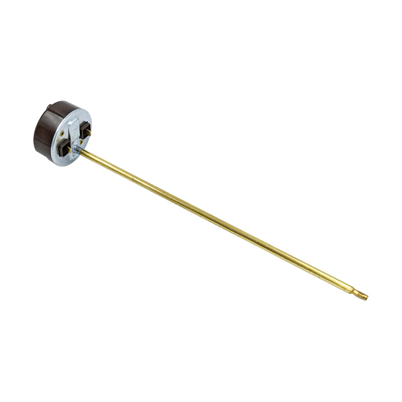 Биметаллический термостат стержневого типа без термозащиты. Есть гнезда (разъемы) для подключения контрольной лампочки